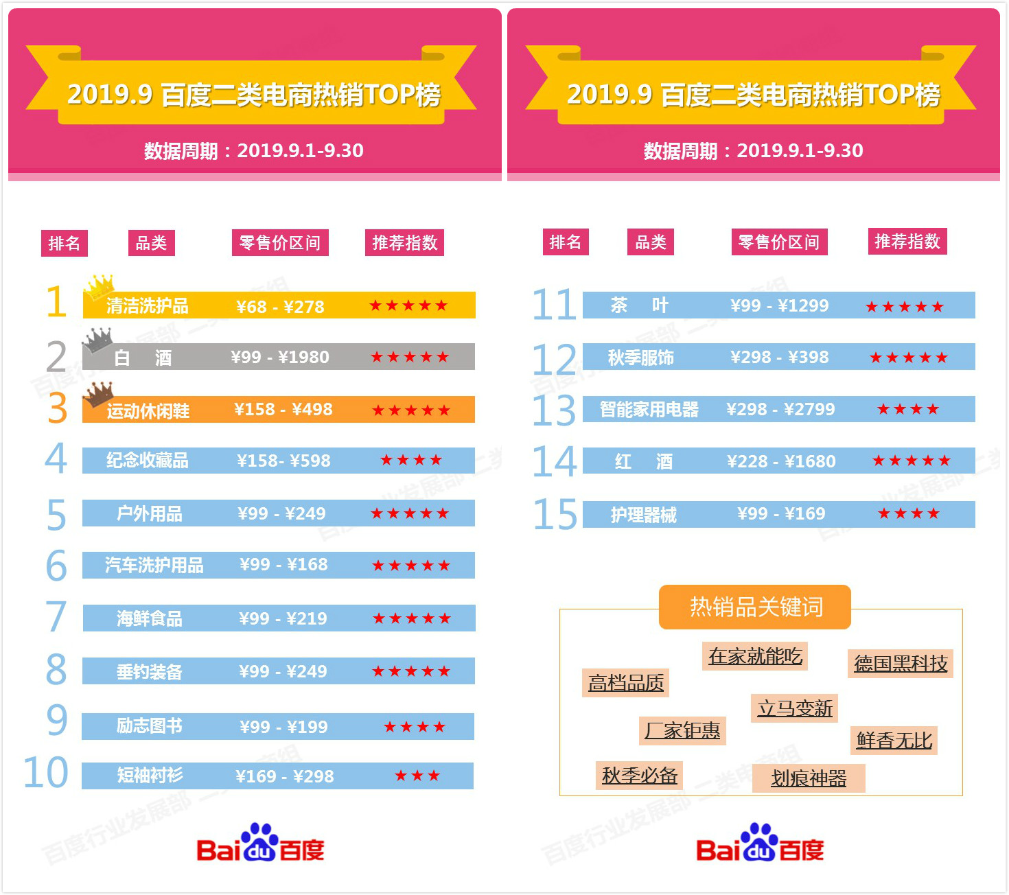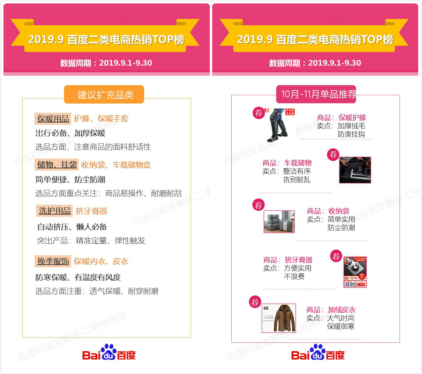 生活必需品一直是二類電商熱銷榜單,除了生活必需品,哪些商品還較受消費者青睞呢?今日小編將會揭秘百度二類電商9月熱銷商品榜,同時推薦10-11月熱銷商品榜單,助力您的選品決策!