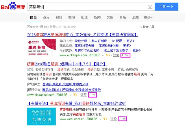 簡單說就是:您在推廣平臺的后臺設置相關關鍵詞(就是潛在客戶有可能搜的詞),比如你設置了:“英語培訓”這個關鍵字 ,當客戶搜索“英語培訓”時 ,你的網頁將會出現在第一頁,如果客戶點擊你的網頁,你就要付費給搜索平臺,不點擊不付費,點擊花多少錢,這個就要看有多少人設置了這個關鍵字,就要比競拍,誰出的價高、質量度高誰的網頁就排在前面!