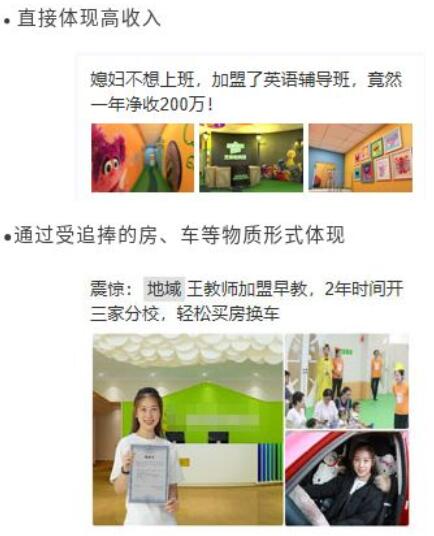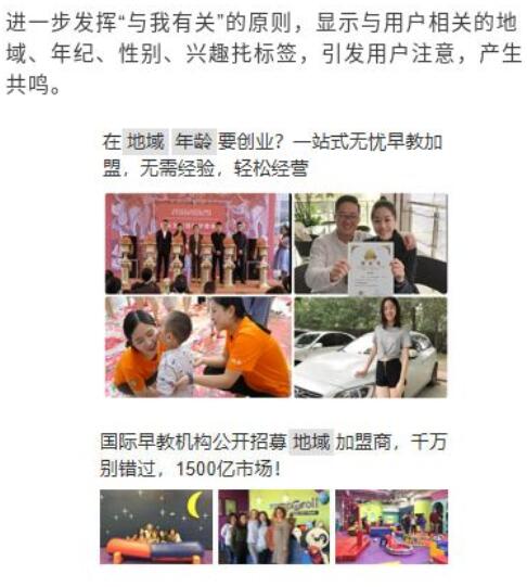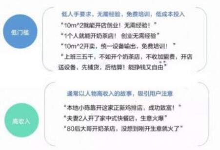 品類是消費者在做購買決策時會想到的最后一級分類。例如:教育類的加盟,范圍很大,要進一步說明是早教?初中、高中?英語?編程等等,要站在目標人群角度給出清晰的分類,以便目標加盟商對進行項目分析和決策。所以在寫信息流文案前,要先明確您的推廣產品屬于什么品類,才有可能更精確的吸引目標加盟商。