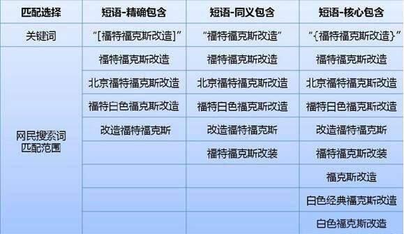 短語匹配包含:短語核心包含、短語同義包含、短語精確包含,