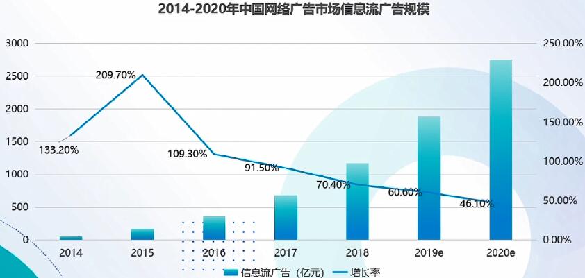 2014年頭條原生廣告上線,信息流廣告進入快速發展期;
